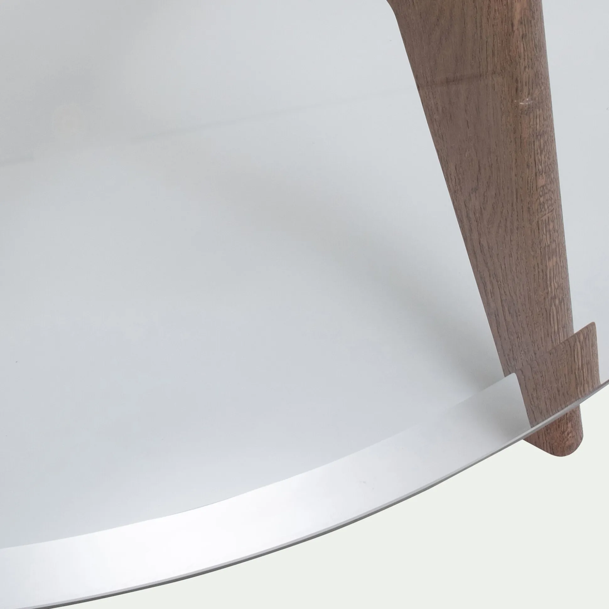 Piétement en chêne certifié FSC®. Plateau en verre trempé.