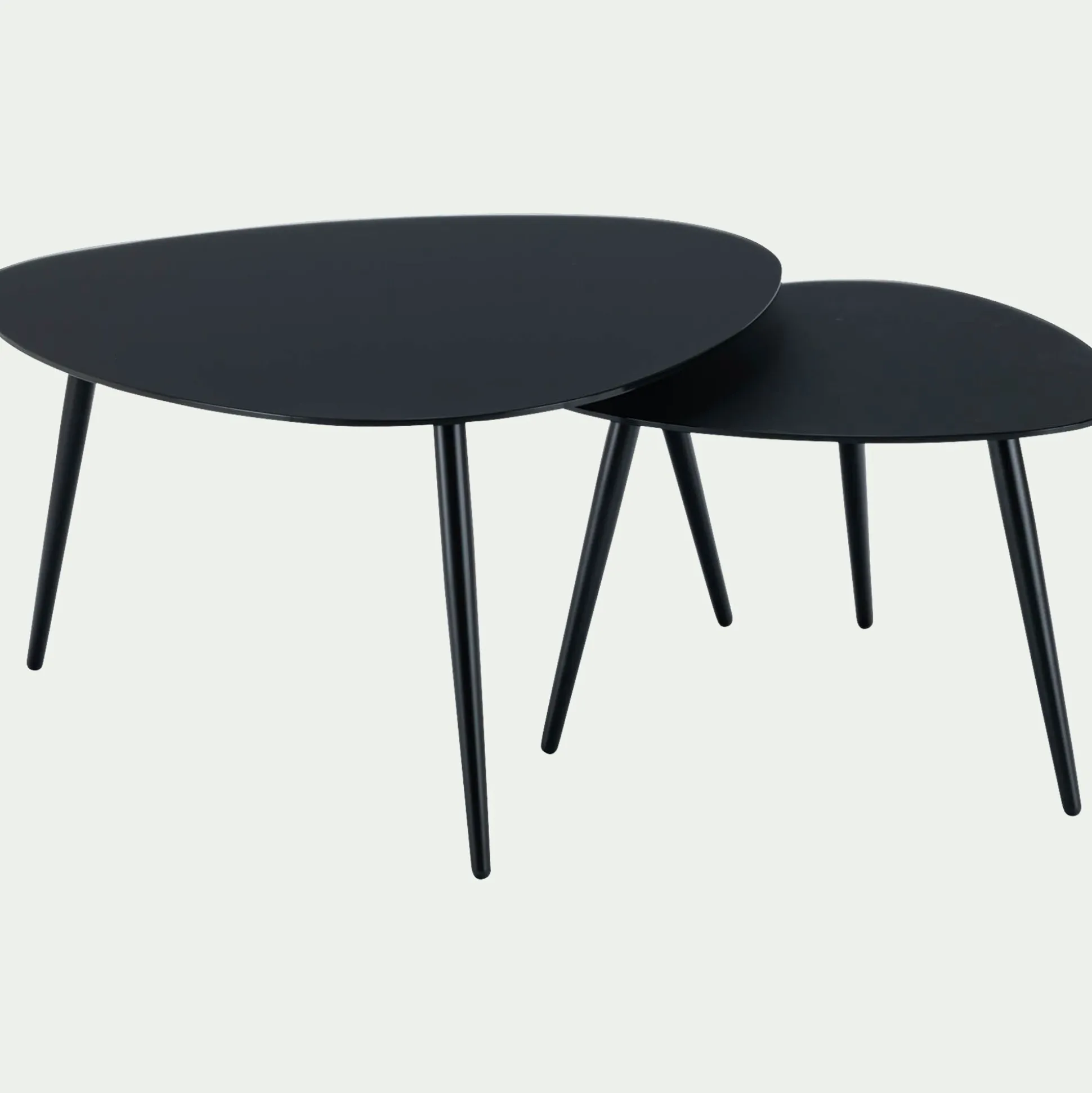 Envie de donner du caractère et du volume à votre salon ? Ces deux tables basses gigognes sont faites pour vous ! Leur look contemporain et brut, associé à un robuste piètement en tube en acier, en fait des pièces uniques. Chaque table est surmontée d’un élégant plateau en verre trempé avec une finition de peinture noire, offrant un design original et lumineux. Disposez-les harmonieusement sur un tapis devant votre canapé pour créer un espace convivial et profiter de moments agréables dans votre pièce de vie.
