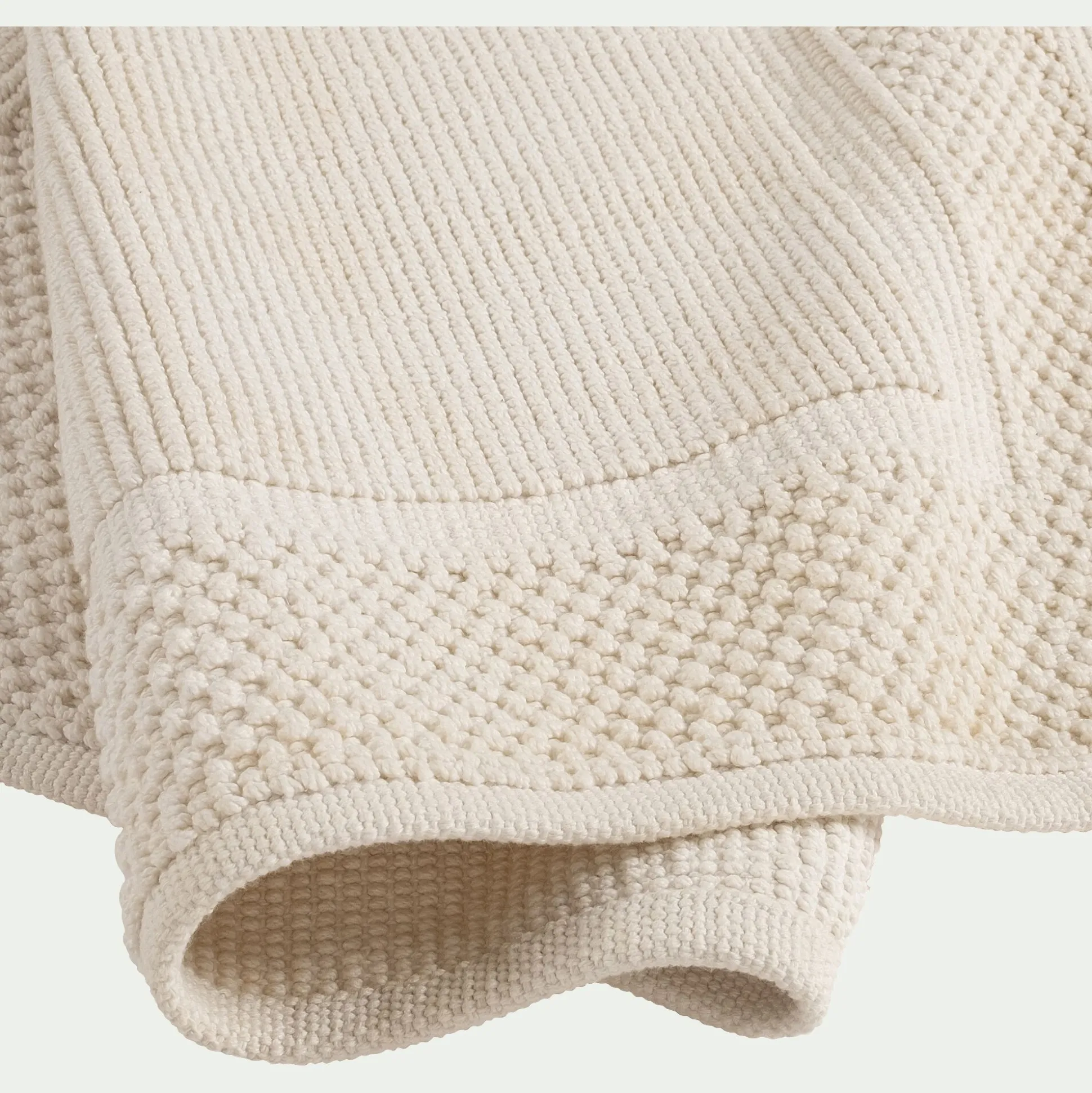 D’apparence simple, le tapis de bain Bagno se distingue par son tissage raffiné. En effet, ce tapis de bain en coton présente un tissu jacquard. En d’autres termes, de jolis motifs tissés viennent décorer ce tapis pour lui offrir texture et volume. Cette élégante finition est rendue possible grâce à un entrecroisement de fils. Un savoir-faire minutieux qui évoque un style vintage. Avec son grammage de 1600 g/m2, ce tapis de bain blanc est très absorbant, un véritable atout pour la salle de bain.