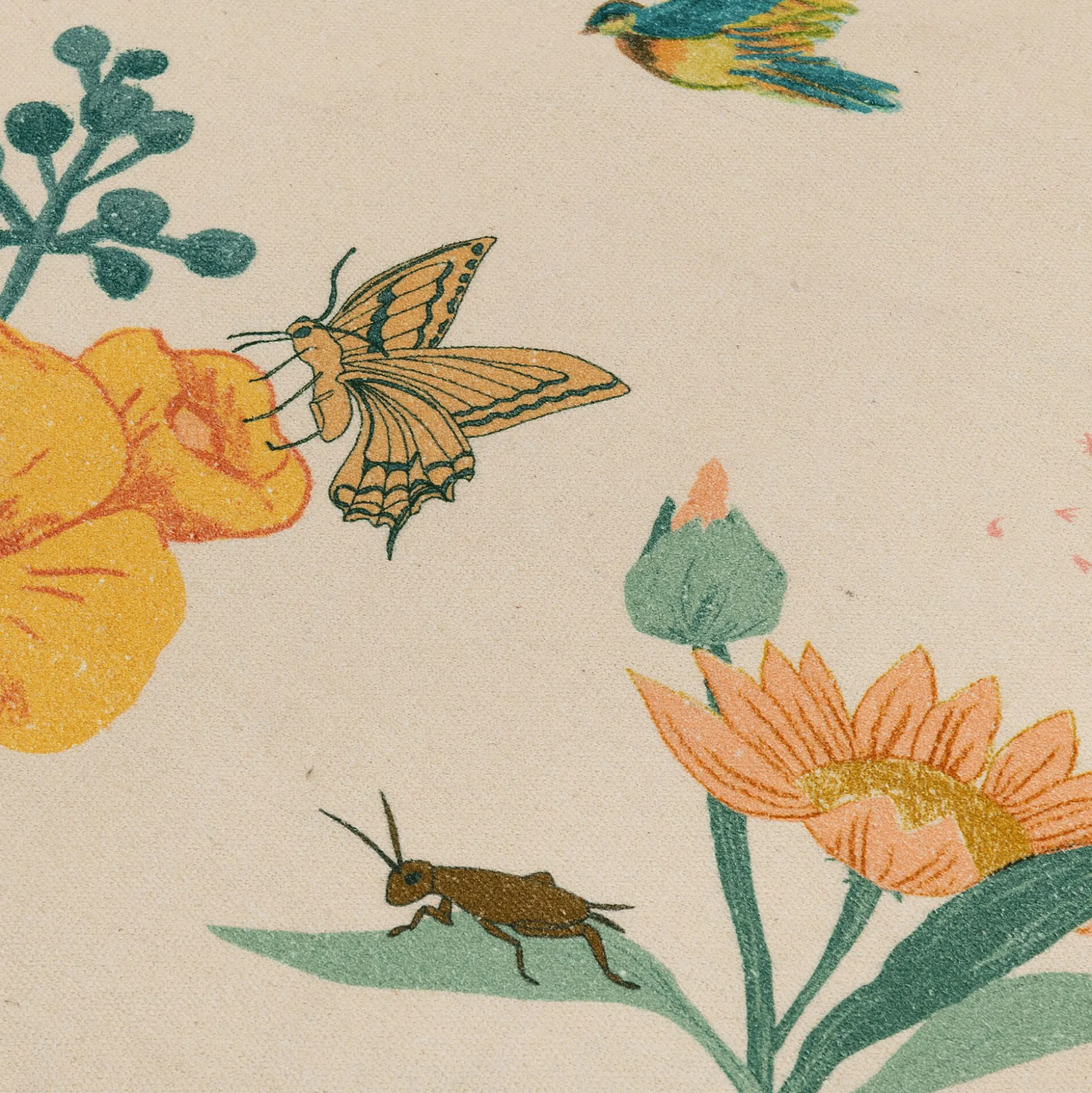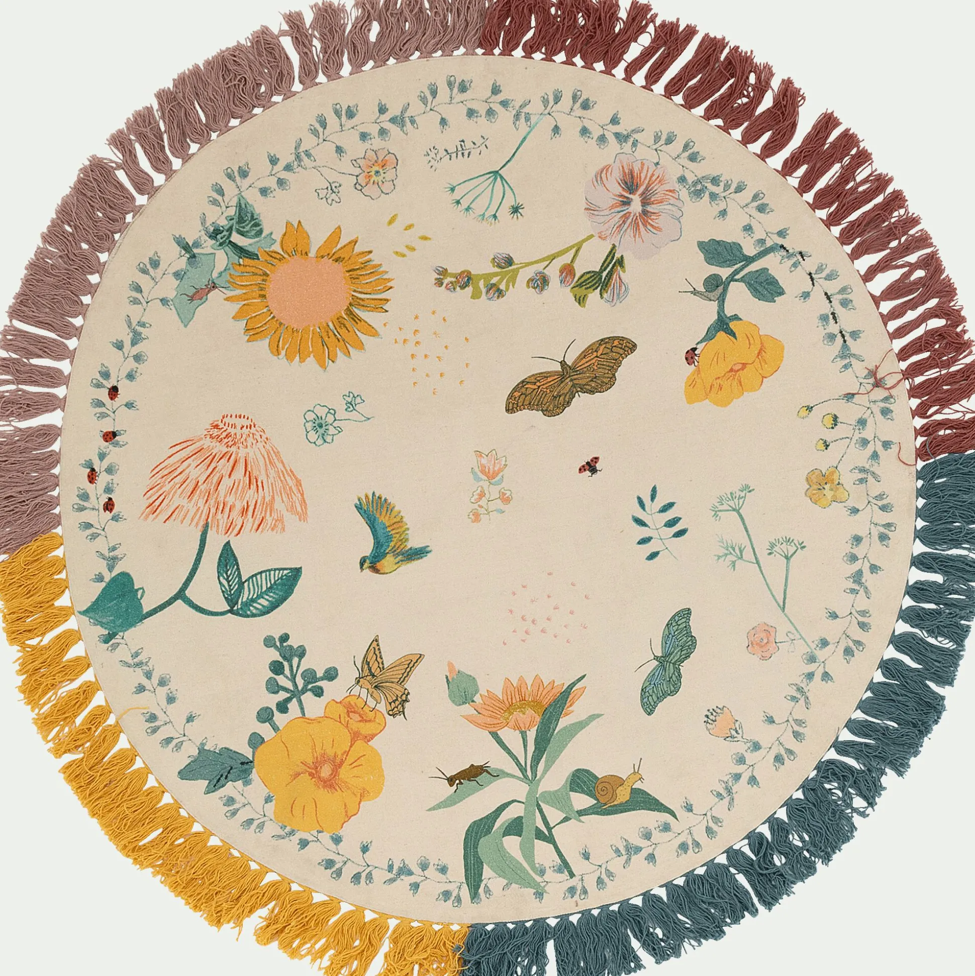 Tapis enfant en coton tissé plat imprimé motifs fleurs d120cm – multicolore
