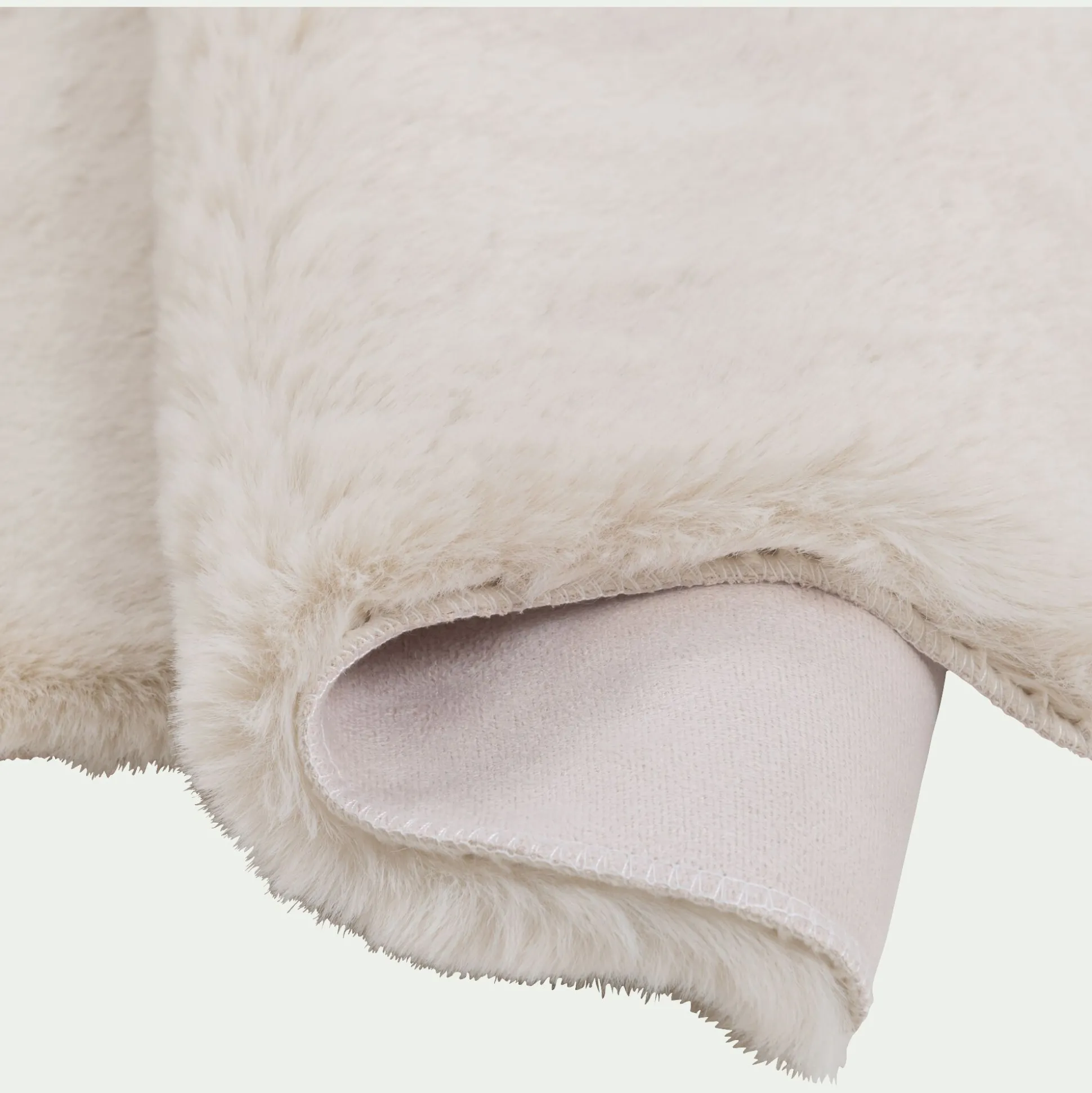 Découvrez ce tapis en 60x90cm beige tout doux avec un effet fourrure qui trouvera aisément sa place dans votre intérieur. Ce tapis sera agréable pour les pieds, sous une table basse, un bureau ou dans une chambre. En effet, il offre un bel effet de douceur et conviendra parfaitement comme descente de lit. De plus, arborant un style chic et épuré, il viendra compléter à merveille la déco de la pièce où vous le placeriez. D’ailleurs, près d’une cheminée, son charme ressortira davantage.