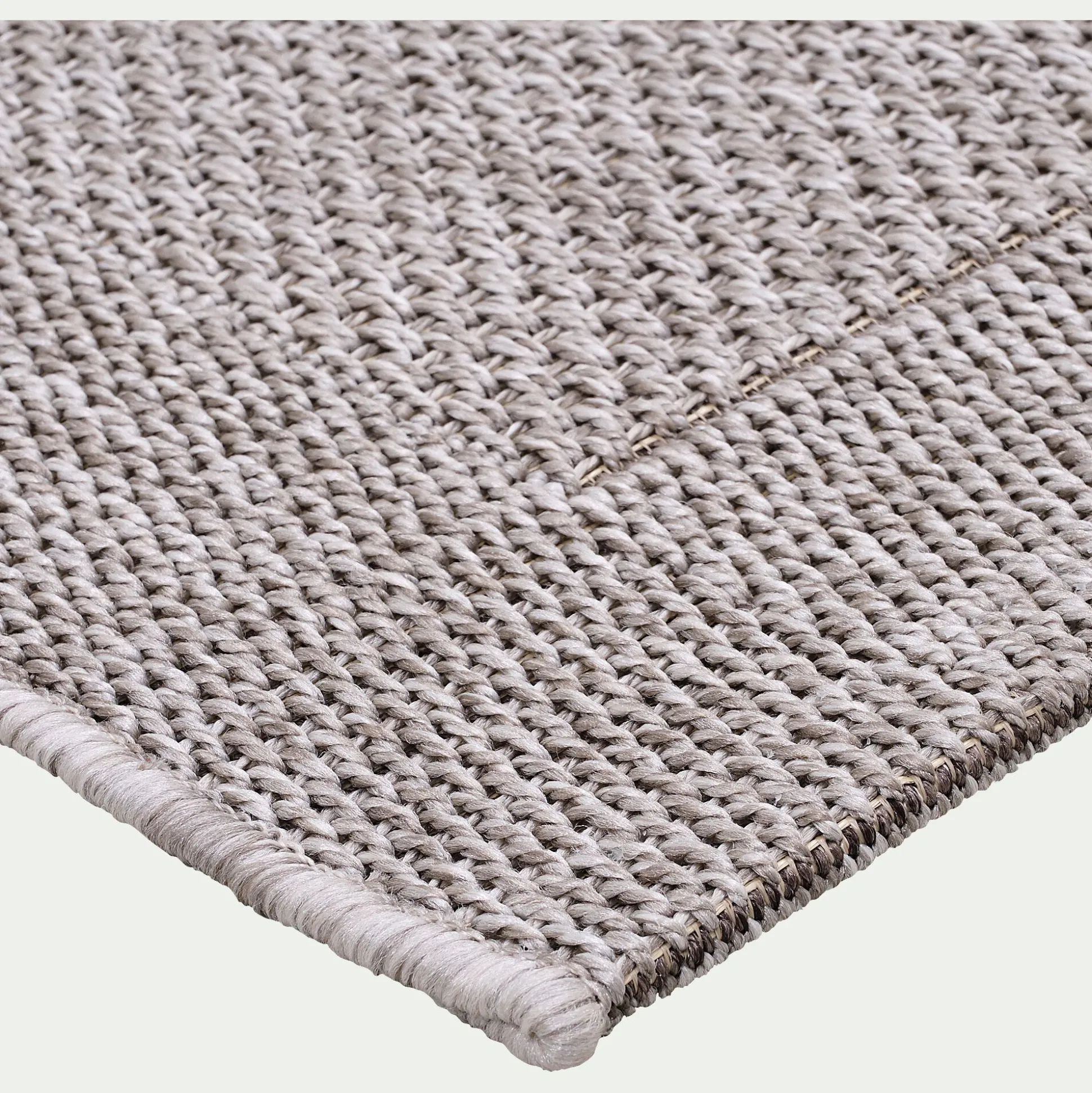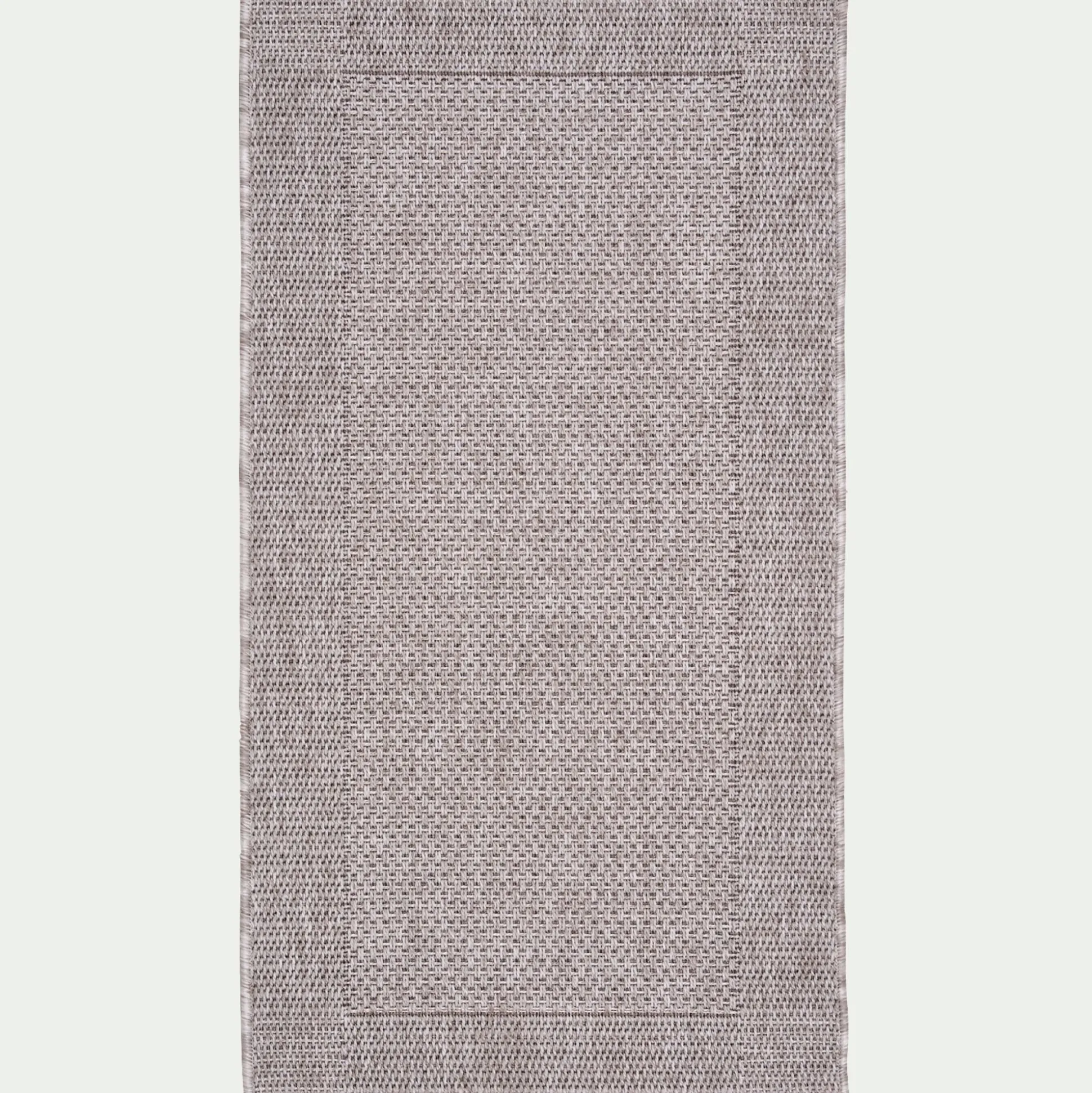 Un tapis qui s’adapte aussi bien à une utilisation intérieure qu’extérieure en 120x170cm au coloris gris résistant aux intempéries pour décorer votre balcon ou votre terrasse ! Ce tapis tissé plat en fibres synthétiques propose une très belle imitation du sisal, facile d’entretien, et extrêmement solide, vous pourrez le nettoyer à l’eau. Il habillera votre sol avec élégance pour un rendu naturel.
