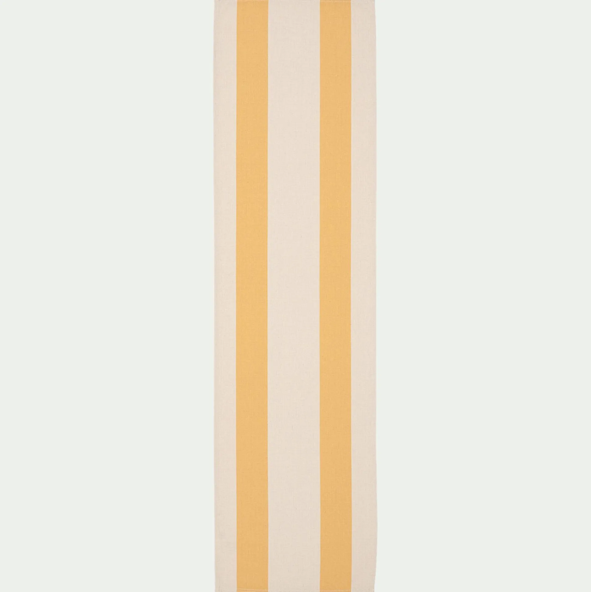 Offrez un second souffle à votre chilienne en changeant uniquement sa toile. Avec le modèle Marage, partez pour une promenade en bord de mer. Son motif à rayures évoque les parasols, les transats et les serviettes disposés dans le sable chaud. Dans notre coloris jaune, cette toile de chilienne interchangeable sent bon les vacances au soleil. Aménagez un petit coin de paradis dans votre jardin, espace où vous ressourcer avec les beaux jours. Cette toile de chaise longue est traitée pour résister aux intempéries : un accessoire déco à changer au fil de vos envies et des tendances.