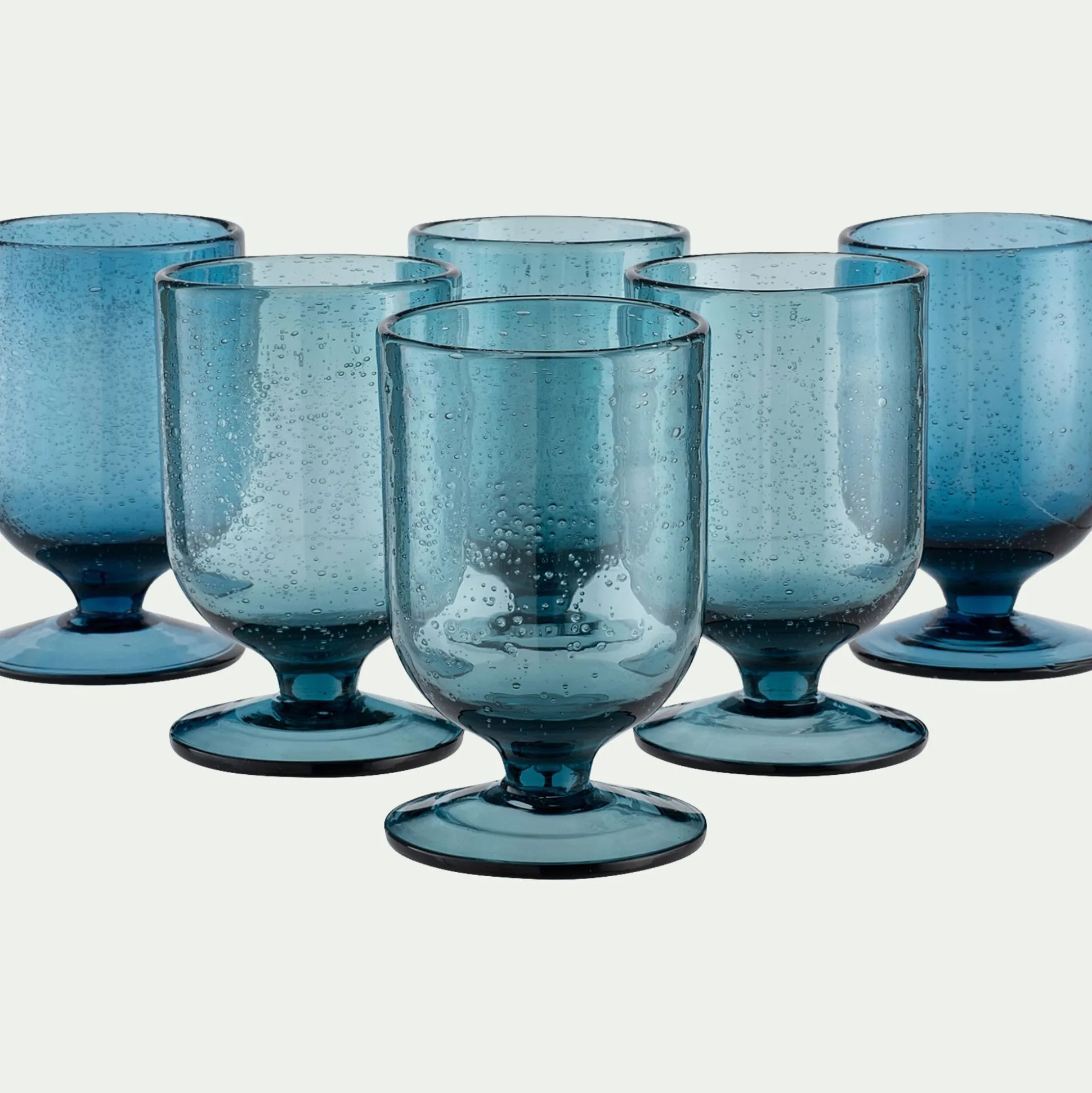 Découvrez ces jolis verres à pied bullés bleus. Ils conviendront parfaitement pour votre dressage de table et apporteront une touche colorée à votre déco. En verre, ils s’accorderont parfaitement avec votre vaisselle. Ils conviendront pour un usage quotidien, mais également lors de vos réceptions. L’effet bulles et gouttes d’eau apporte un aspect original à ces verres. Ils sont disponibles dans un autre coloris.